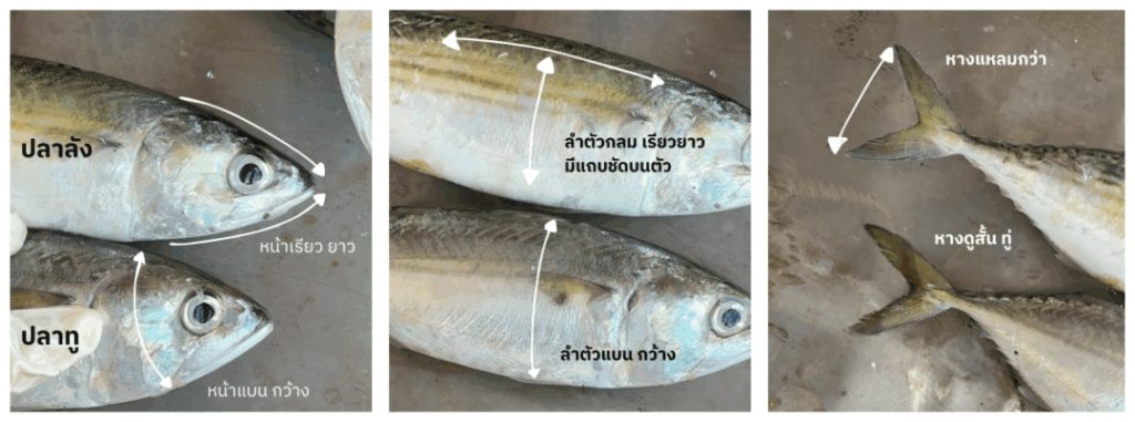 | 特徴 | プラートゥー (ปลาทู) (R. brachysoma) | プラーラン (ปลาลัง) (R. kanagurta) |